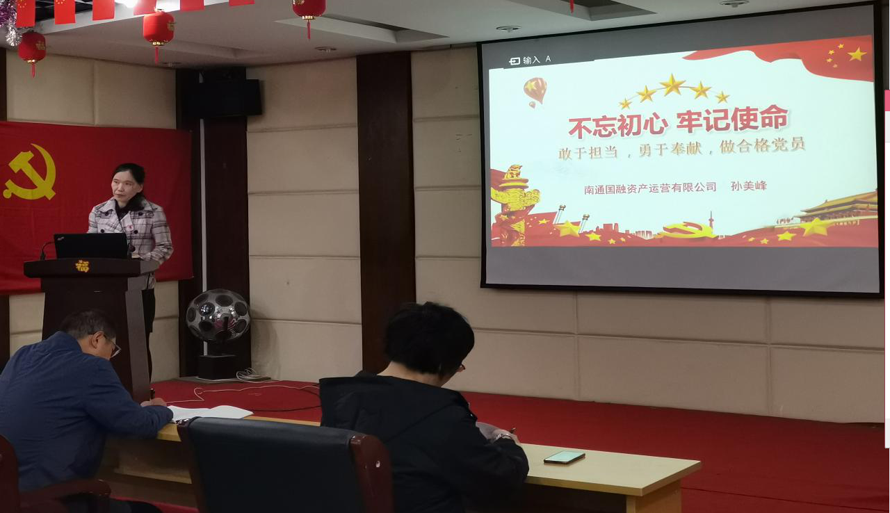 10月24日,南通國融資產(chǎn)運營有限公司黨委委員、工會主席孫美峰結合“不忘初心、牢記使命”主題教育給公司全體員工上了一堂題為“敢于擔當,勇于奉獻,做合格黨員”的專題黨課。 孫美峰引經(jīng)據(jù)典向大家詮釋了什么是擔當奉獻、共產(chǎn)黨員的擔當奉獻精神、如何敢于擔當勇于奉獻。