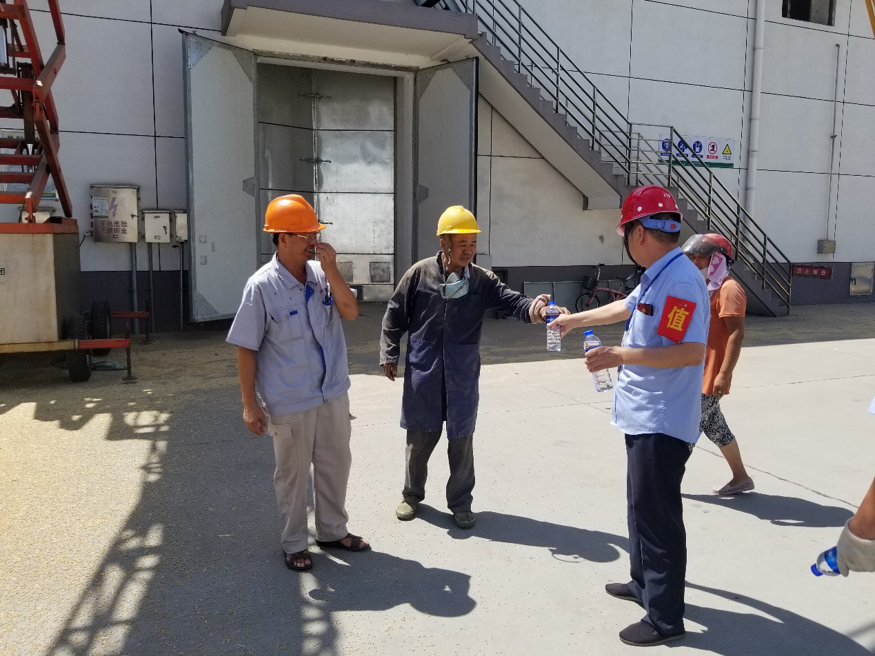慰問(wèn)活動(dòng)中,工會(huì)主席劉金中為一線(xiàn)作業(yè)人員分發(fā)了飲用水等慰問(wèn)品,同時(shí)對(duì)一線(xiàn)作業(yè)人員不懼酷暑,為完成夏糧收購(gòu)任務(wù)不懈努力的精神表示了肯定,并囑咐他們做好個(gè)人防護(hù),隨時(shí)注意自身狀況,倉(cāng)儲(chǔ)科要加強(qiáng)對(duì)一線(xiàn)作業(yè)人員的關(guān)心,推遲下午作業(yè)時(shí)間,將防暑降溫工作落到實(shí)處,將安全生產(chǎn)放在首位。 |