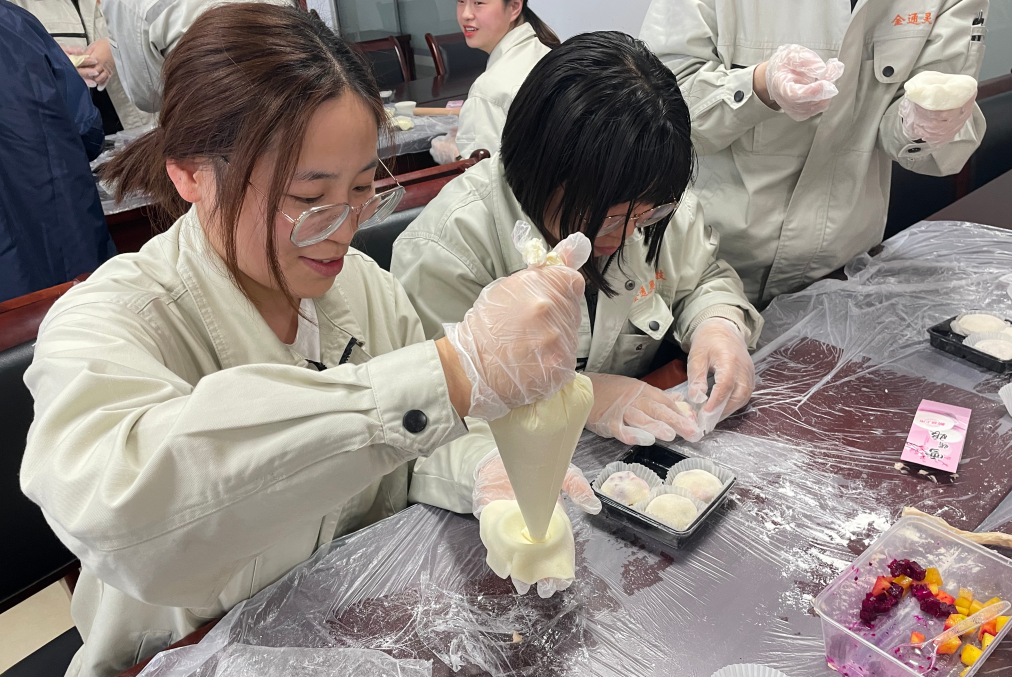 當(dāng)天下午,金通靈近100名女職工歡聚813活動(dòng)室,在張老師的現(xiàn)場制作教導(dǎo)下,分別制作了雪媚娘和便當(dāng)?shù)案??;顒?dòng)現(xiàn)場,張老師講解了烘焙知識(shí)和制作流程,職工們在認(rèn)真聆聽后,體驗(yàn)著自己動(dòng)手制作甜品的樂趣,享受著快樂的烘焙時(shí)光。隨著時(shí)間的推移,一個(gè)又一個(gè)飽滿、垂涎欲滴的雪媚娘、一個(gè)個(gè)精致的便當(dāng)?shù)案庵谱魍瓿伞?