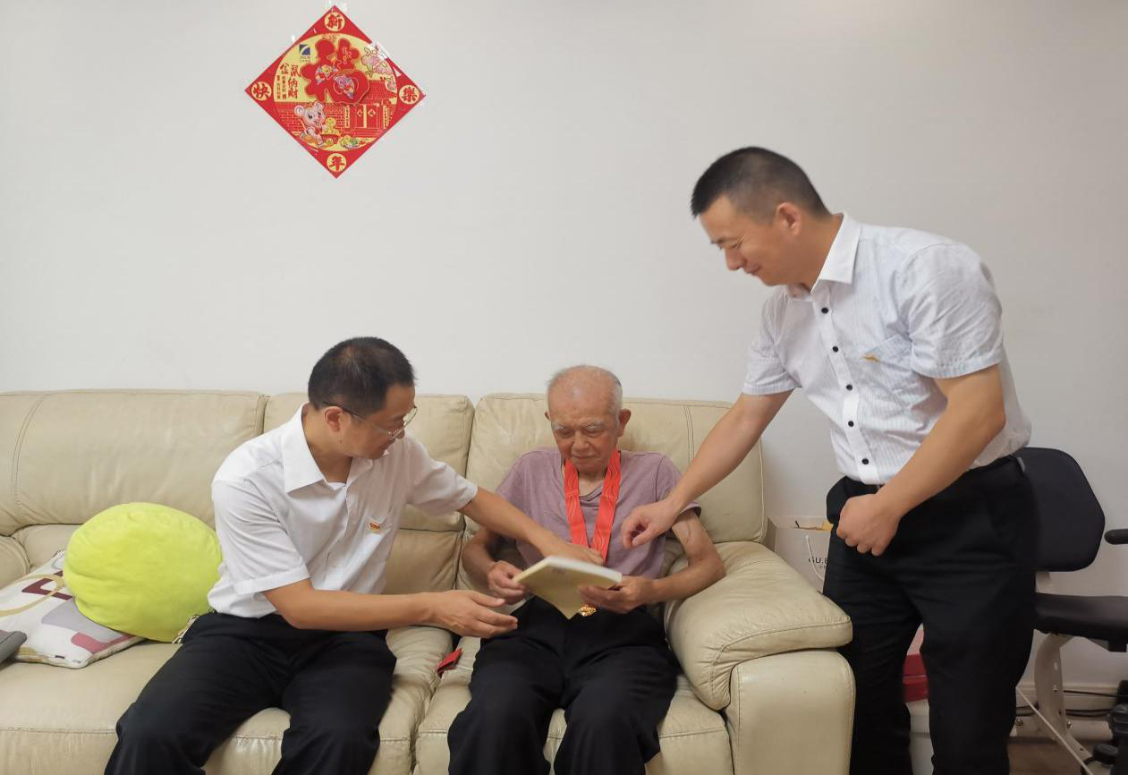 6月29日上午,國融公司黨委書記劉海兵、黨委副書記王冠榮帶領(lǐng)公司支部書記和黨員代表,慰問在黨50年以上的老黨員,向他們致以誠摯的問候,送上“光榮在黨50年”紀念章。