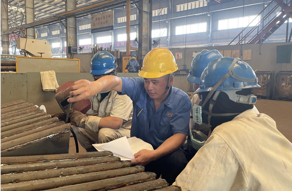 金通靈,一個有著深厚歷史底蘊的企業(yè),是孕育勞模的沃土,多年來,培養(yǎng)出3名省勞動模范,6名市勞動模范,1名區(qū)勞動模范,2018年6月,金通靈成立了勞模集群黨支部,充分發(fā)揮勞模示范效應(yīng),引領(lǐng)產(chǎn)業(yè)工人加入到創(chuàng)新驅(qū)動發(fā)展的行列,助力企業(yè)發(fā)展。尹芬興便是勞動模范中的代表人物,今年他被評為“江蘇省勞動模范”,年近五十的他已在金通靈走過26年的青春歲月。當年尹芬興從安徽老家出來時,他還不到20歲,憑著一腔熱血和對未來美好的憧憬來到南通工作。他把勞動當做樂趣,跟同事們交流經(jīng)驗、切磋手藝,共同解決工作中遇到的難題是他工作的常態(tài)。26年來,他不斷摸索,不斷學習,不斷提升,積極發(fā)揮勞模示范帶頭作用,帶領(lǐng)團隊成員積極投身到創(chuàng)新工作中,多年來攻克多個技術(shù)難題。其中“兩節(jié)身”前盤的成型技術(shù),低溫升蒸汽壓縮機組合成型免加工藝加強圈技術(shù),干熄焦煤氣風機制作工藝改進等創(chuàng)新成果不僅節(jié)約了大量生產(chǎn)成本、縮短生產(chǎn)時間,更保證了產(chǎn)品質(zhì)量,為公司創(chuàng)造了巨大經(jīng)濟效益。如今的尹芬興是葉輪成型組一組組長,每日負責的事情繁雜,他卻總能一絲不茍地完成,臟活、累活搶著干,白色工作服印著他斑斑勞動的印記,也承載了他一路奮斗的榮光。26年來,他始終把“愛一行、干一行、專一行”作為工作的信條,以此激勵自己在工作崗位上奮發(fā)成才。就是憑著這樣的信念,他在一線崗位上堅守了二十余年,用堅持堅毅的姿態(tài)詮釋著勞模精神,讓勞模精神發(fā)光發(fā)熱。今年,尹芬興光榮地加入中國共產(chǎn)黨,高舉右拳,在黨旗下莊嚴宣誓,他黝黑發(fā)亮的面龐上印刻著堅定的信仰,從此,懷揣著共產(chǎn)黨人的初心使命,他又踏上了新的征途。
