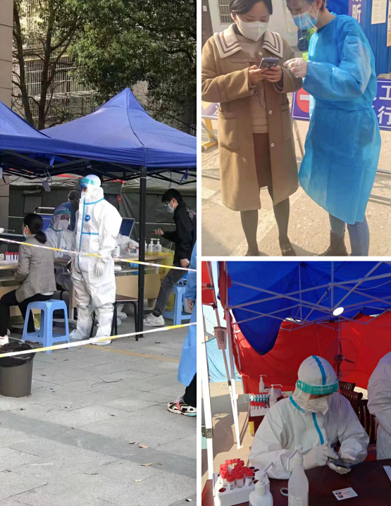 “您好,請配合我們測量體溫”、“請大家?guī)Ш每谡帧?、“請?zhí)崆皽蕚浜蒙矸葑C”······他們在現場協(xié)助查驗雙碼、測量體溫、維護現場秩序、對老人進行掃碼幫助等,大慶社區(qū)、大南社區(qū)、濠東社區(qū)等均可見揚子碳素志愿者們忙碌的身影。