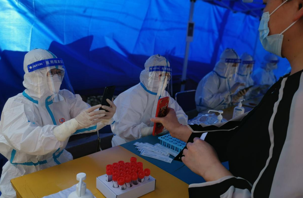 為確保疫情防控知識宣傳落實到位,國融公司綜合事務部主任袁莉,盡管身患糖尿病,仍主動承擔起了紡織大廈疫情防控的任務。線上,她利用微信朋友圈、微信群等陣地及時轉發(fā)疫情防控權威信息,大力推進防疫宣傳;線下,她連續(xù)值班值守,主動參與起鳳社區(qū)卡口執(zhí)勤,服務三輪全員核酸檢測,為全力撐起疫情防控“安全傘”貢獻力量。 在疫情防控工作中,資產經營部主任楊凌燕夫婦更是以辛苦付出贏得了一致認可。她是支援起鳳社區(qū)的志愿者,身穿“大白”協(xié)助醫(yī)護人員進行全民核酸檢測;她是支援所在社區(qū)的急先鋒,維持秩序、引導群眾,盡心盡責。她的丈夫作為一名公務員也一起就地轉為志愿者,兢兢業(yè)業(yè)做著宣傳解釋疫情防控相關政策、服務全員核酸檢測等工作。楊凌燕說:“累是真的,但是能得到大家的認可和贊揚,值了!” 下沉到社區(qū)的干部職工化身“大白”成為了協(xié)助做好核酸檢測的標配。財務審計部副主任張煒第一次穿上全套“大白”支援起鳳社區(qū)核酸檢測后,就有了非常深刻的體會。4月12日下沉到所在社區(qū)后又一次穿起“大白”,四個多小時核酸檢測完,再回到家面對兩個孩子時,她表示“電量僅剩百分之一”。話語中,既有樂觀積極的心態(tài),更有對工作負責的堅守和擔當。