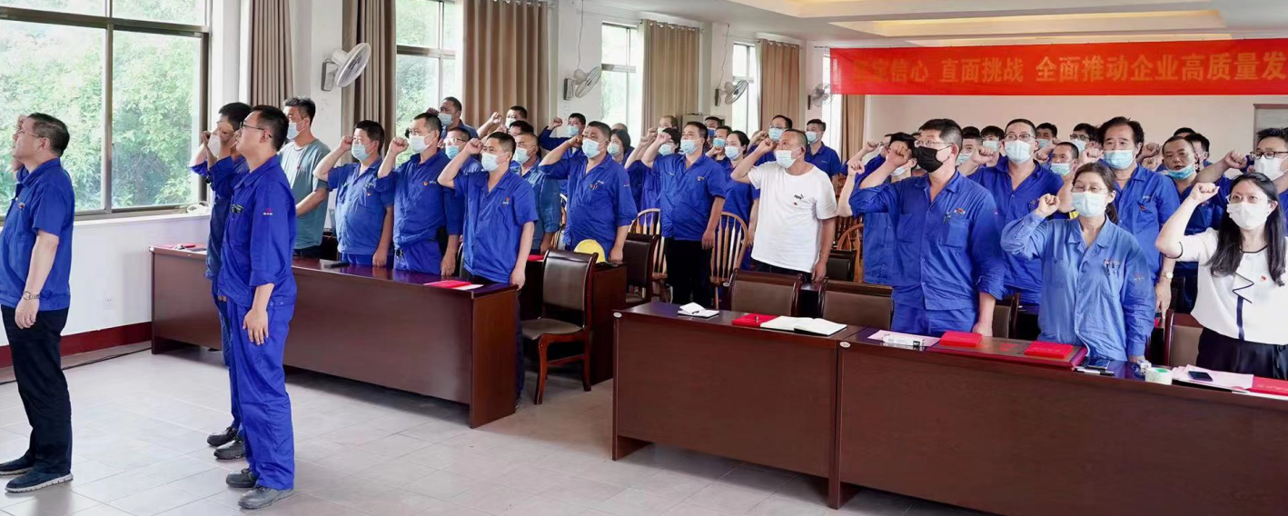 大會在莊嚴(yán)的國歌聲中拉開帷幕。 紀(jì)委書記、工會主席陸輝宣讀了《關(guān)于表彰2021年度公司先進(jìn)黨支部、優(yōu)秀黨務(wù)工作者和優(yōu)秀共產(chǎn)黨員的決定》。授予機(jī)動車間黨支部、科室第二黨支部“先進(jìn)黨支部”稱號;授予李淑娟等3名同志“優(yōu)秀黨務(wù)工作者”稱號;授予錢紅斌等17名同志“優(yōu)秀共產(chǎn)黨員”稱號。新黨員代表蔣洋和優(yōu)秀黨員代表錢建在會上作了交流發(fā)言。新黨員進(jìn)行了入黨宣誓,老黨員重溫入黨誓詞。 劉明指出,全體黨員干部要提高政治站位,切實增強(qiáng)政治自覺、思想自覺、行動自覺。面對重任、面對考驗,要不忘初心、牢記使命,時時刻刻增強(qiáng)自身的責(zé)任意識,堅持做到守土有責(zé)、守土擔(dān)責(zé)、守土盡責(zé)。要勇于擔(dān)當(dāng)作為,面對矛盾困難時要敢于迎難而上,面對危機(jī)時要敢于挺身而出,面對失誤時要敢于承擔(dān)責(zé)任。對目前公司實施的人力資源優(yōu)化配置五年規(guī)劃、開展的年度專項工作、技術(shù)創(chuàng)新降本增效工作以及即將開展的形勢宣傳主題教育等重點工作,要一步一個腳印去有效落實。