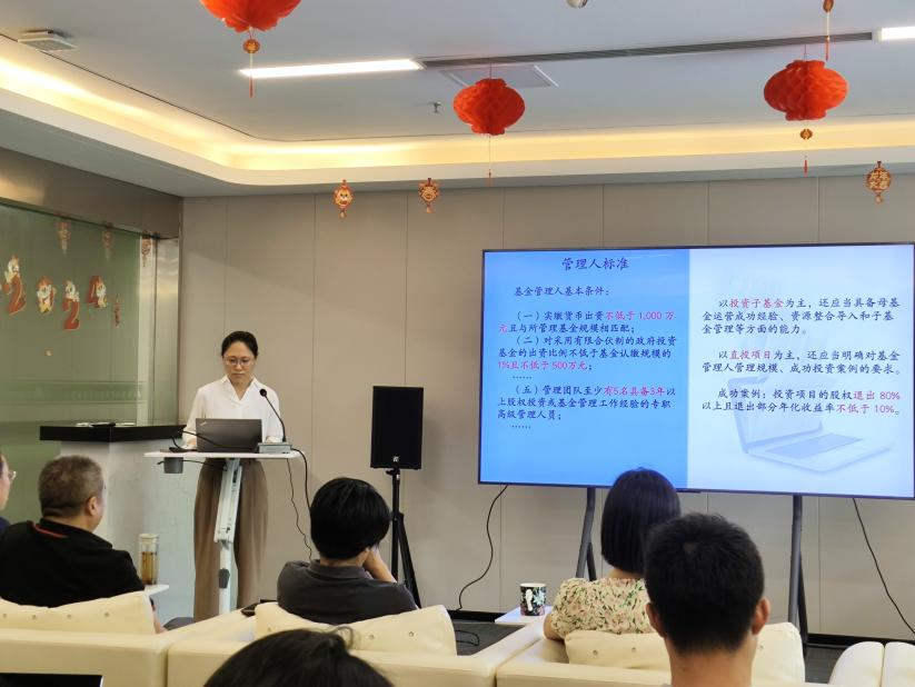 公司風險控制部季琳圍繞政府投資基金設立與募集、管理人遴選、基金投資決策、投后風險控制與績效評價、基金終止與退出等環(huán)節(jié),對政府投資基金管理要求進行解讀。 公司財務審計部陶東旭對財務基礎知識進行了普及,同時結合實際工作對開展財務盡職調查的重點關注事項進行詳細講解,并對典型案例進行深入剖析,介紹了面對企業(yè)財務問題時查證與處理的方法。 今后,公司將繼續(xù)開展各種類型的員工內部培訓,強化團隊內部知識傳播,加強團隊溝通協(xié)作,持續(xù)提升專業(yè)隊伍素質能力,為公司高質量發(fā)展提供堅實的人才支撐和智力支持。 |