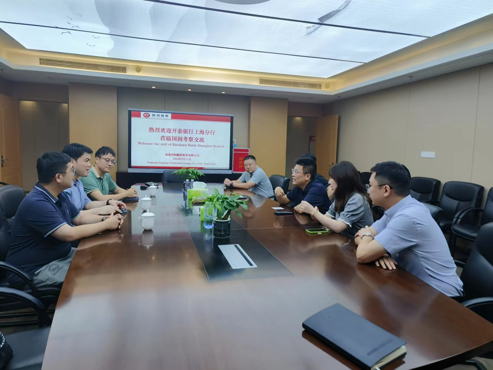 9月12日,開泰銀行上海分行行長Ukrit Archapairoj一行人到國潤租賃開展業(yè)務交流,國潤租賃陳大鵬及相關人員參加了交流座談。